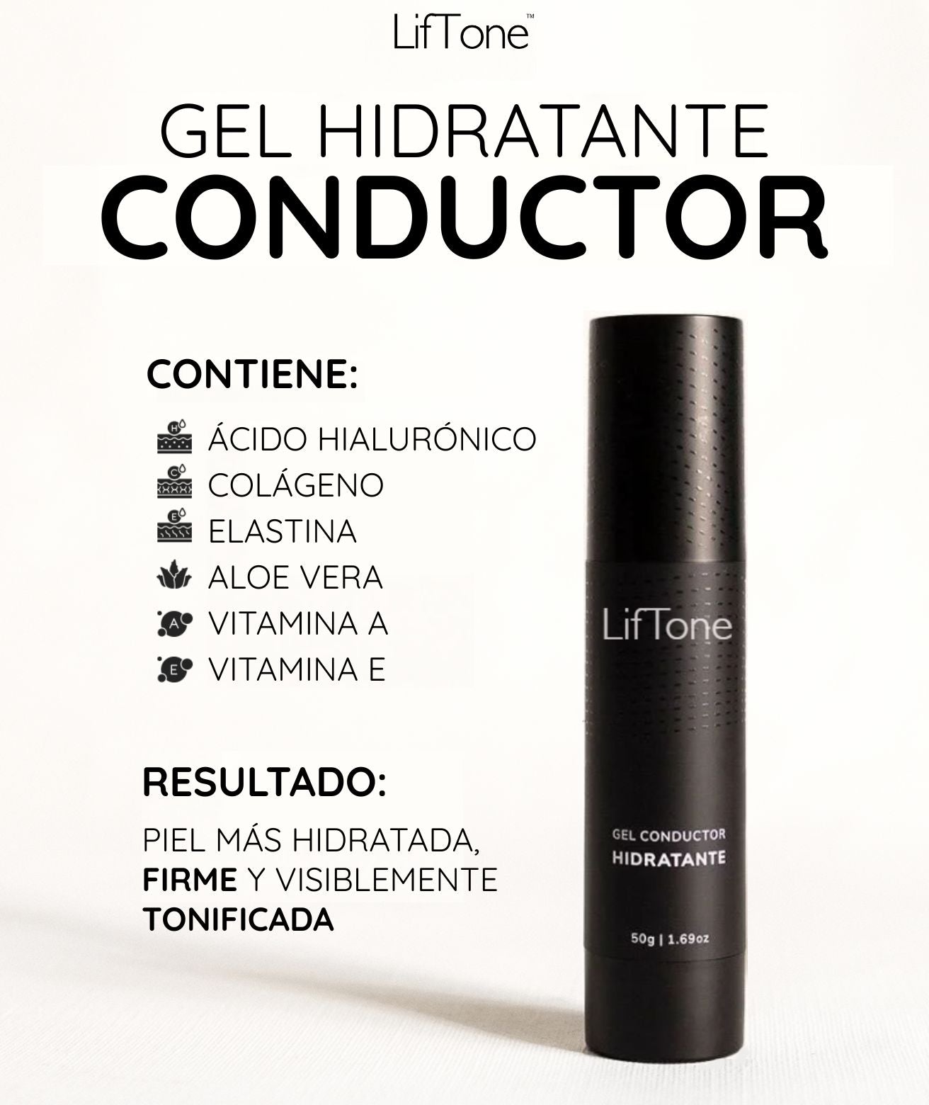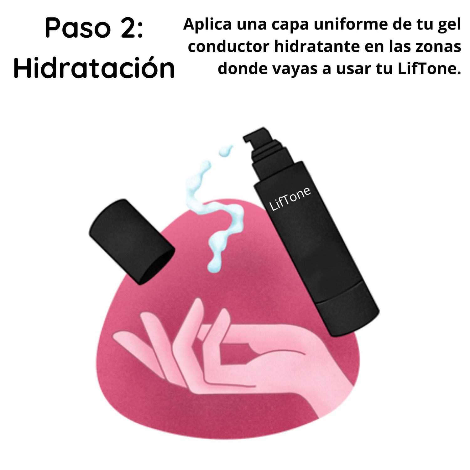 Paso 2: Gel Conductor Hidratante. Aplica una capa uniforme de tu gel Conductor Hidratante en las áreas donde utilizarás tu LifTone.