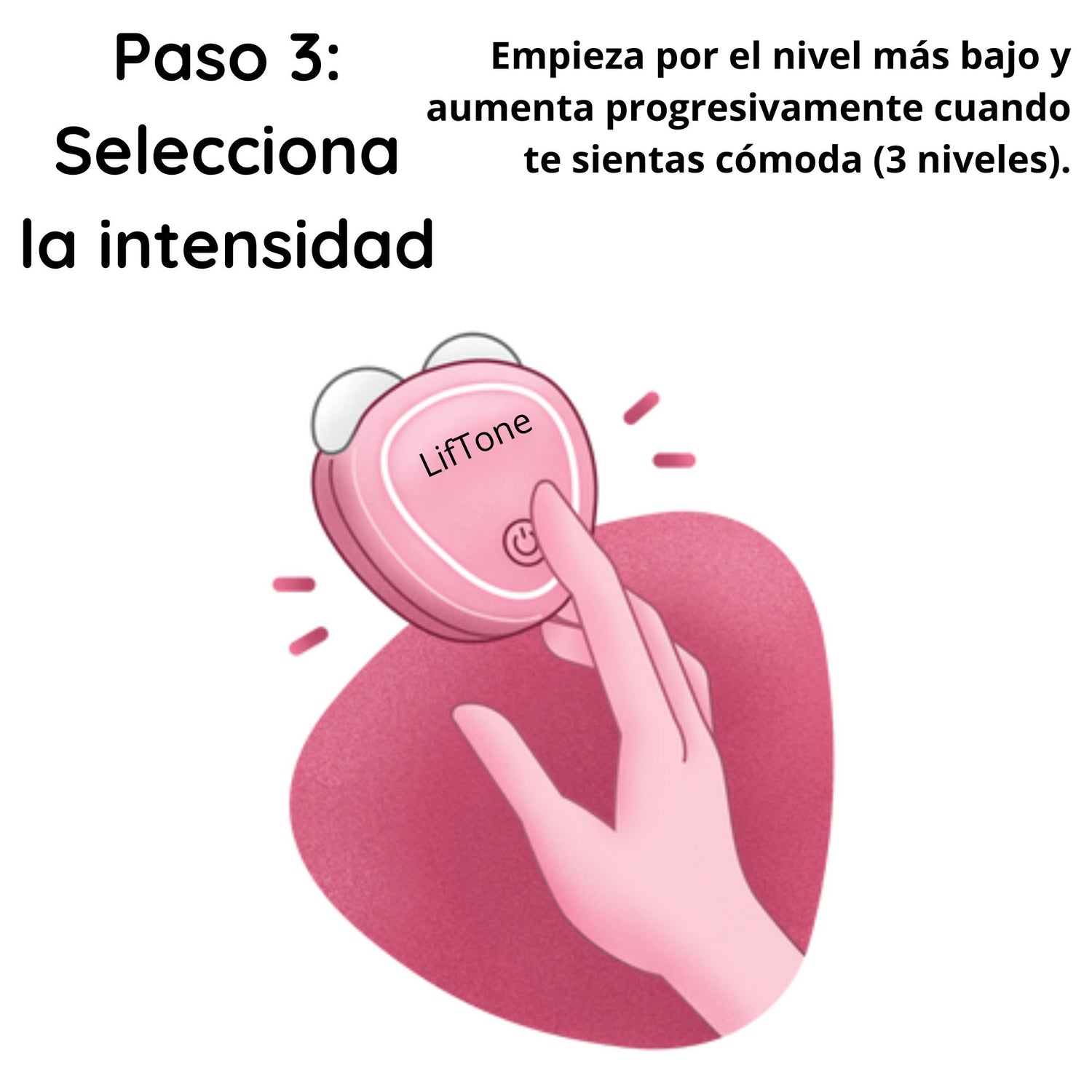 Paso 3: Selecciona tu intesidad. Comienza con el nivel más bajo y aumenta gradualmente según te sientas cómoda. (3 Niveles)
